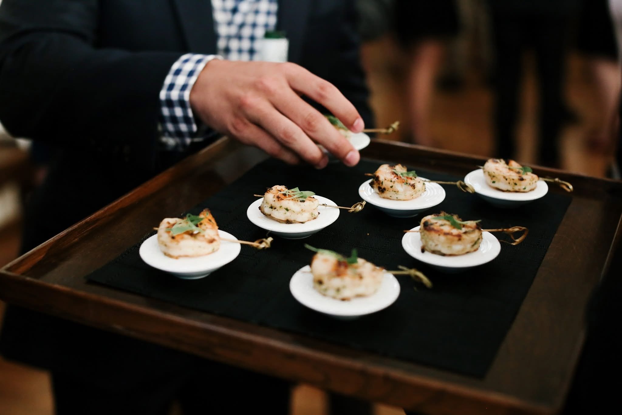 Food is prepared by our chef team and presented in the format that best fits the occasion; as a seated lunch, passed to guests, or served from chef stations that allow guests to move comfortably through the room. Menus are seasonal and designed to feel generous without interrupting the rhythm of the gathering.